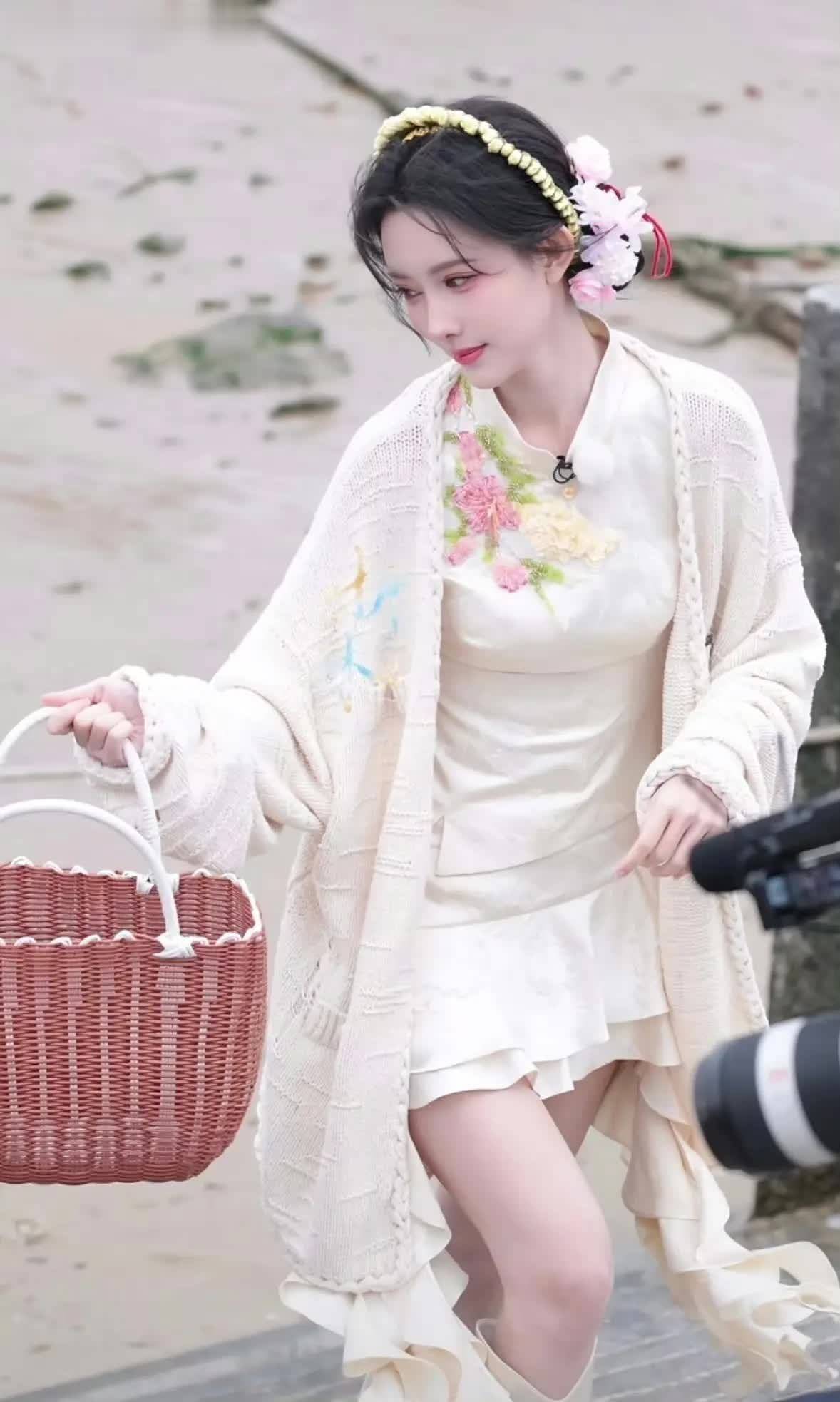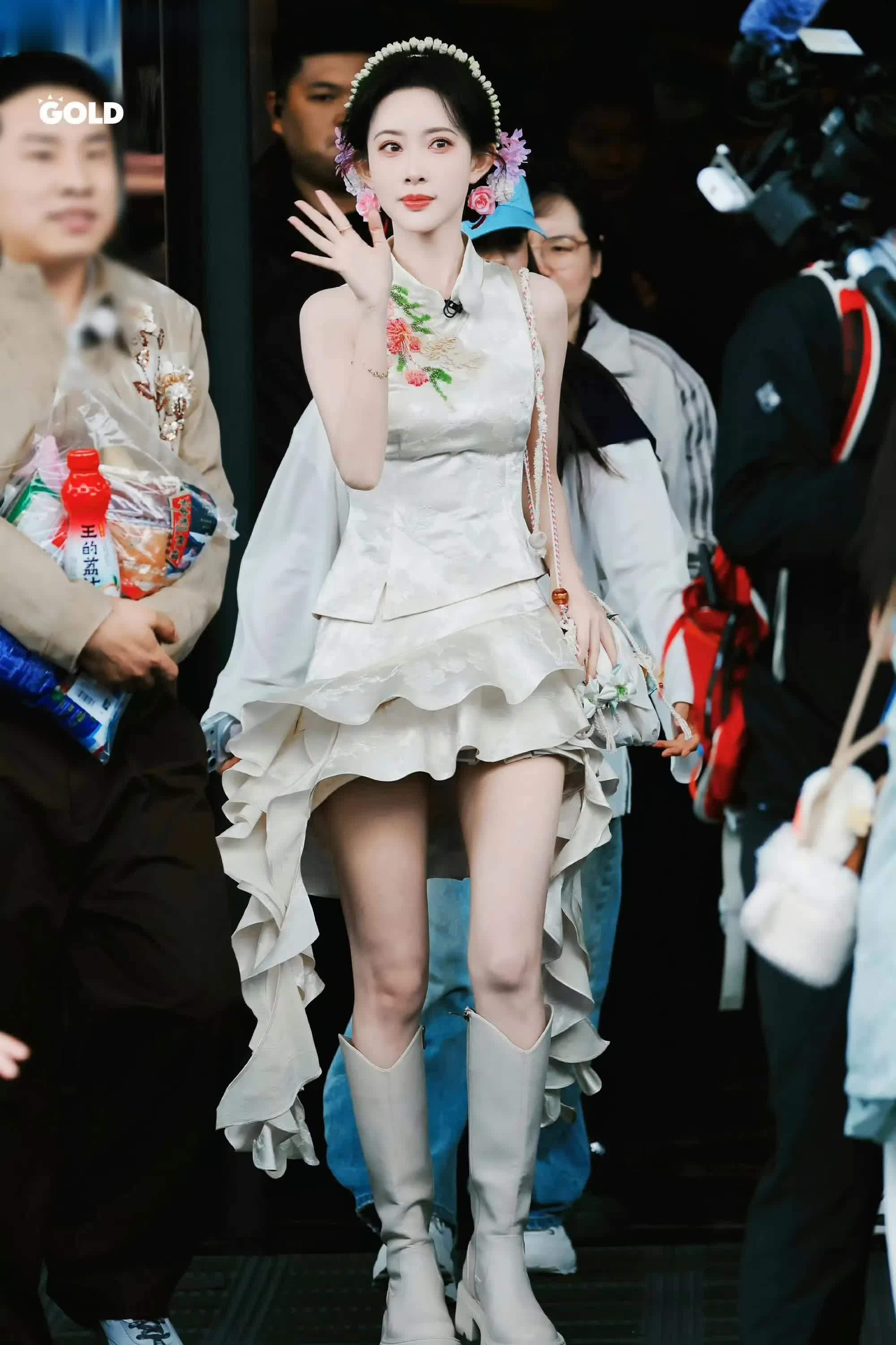 孟子义五官精巧,身姿纤细,身着一件无袖改良新中式上衣,腰线的剪裁恰到好处地贴合身形,再配上飘逸的白色迷你短裙,传统韵味得以保留,轻盈感也油然而生!